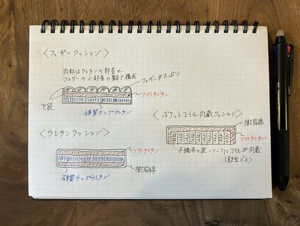 ソファクッションの主な3つの構造タイプ